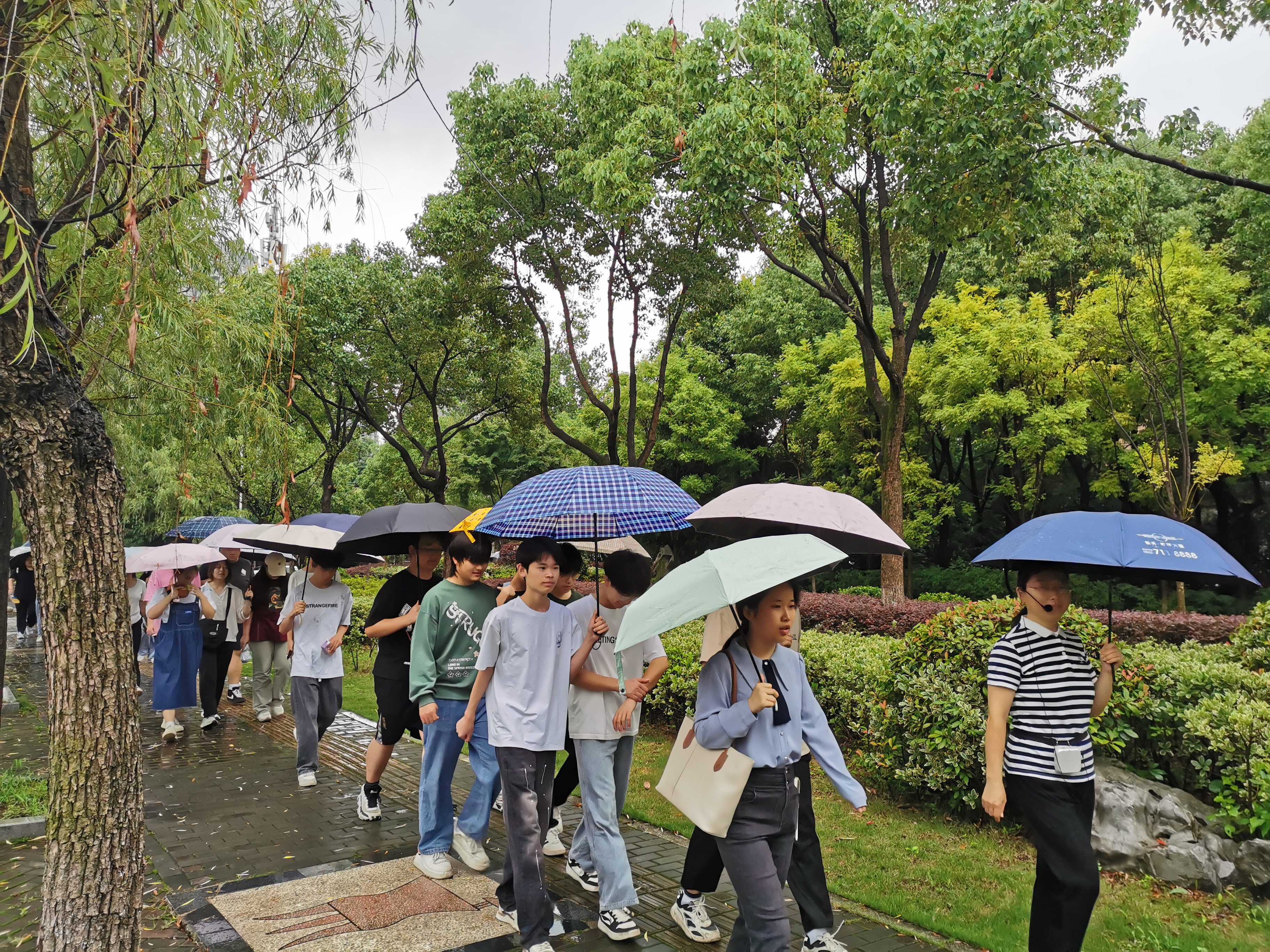 路途中,同学们排成两路纵队有序前往。一路上,老师为同学们介绍着铜陵市近年来市容市貌的巨大变化,同学们边走边感受着铜陵花园式步道初夏翠绿的景色,步行大约20分钟便来到了新民污水处理厂。