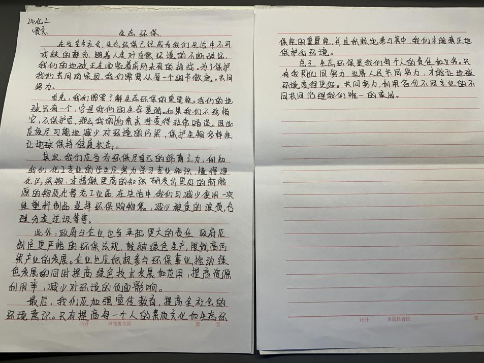 2024年10月28日,纳分子社团在总务楼302教室举办了生态环保征文比赛,众多学生在这场比赛中各抒己见,展现出对环保的深入思考和强烈关注。