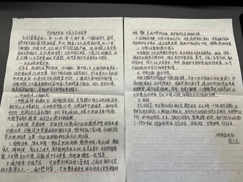 大家怀着对地球家园的热爱和对环境保护的责任感,用文字勾勒出自己心中的环保蓝图。这些作品涵盖了多个角度的环保主题。有的作品以细腻的笔触描绘了环境污染的现状,如被垃圾污染的河流、被雾霾笼罩的城市等;有的则充满希望地讲述了环保行动带来的改变,像社区绿化后的生机盎然,以及湿地保护后的生物回归等。