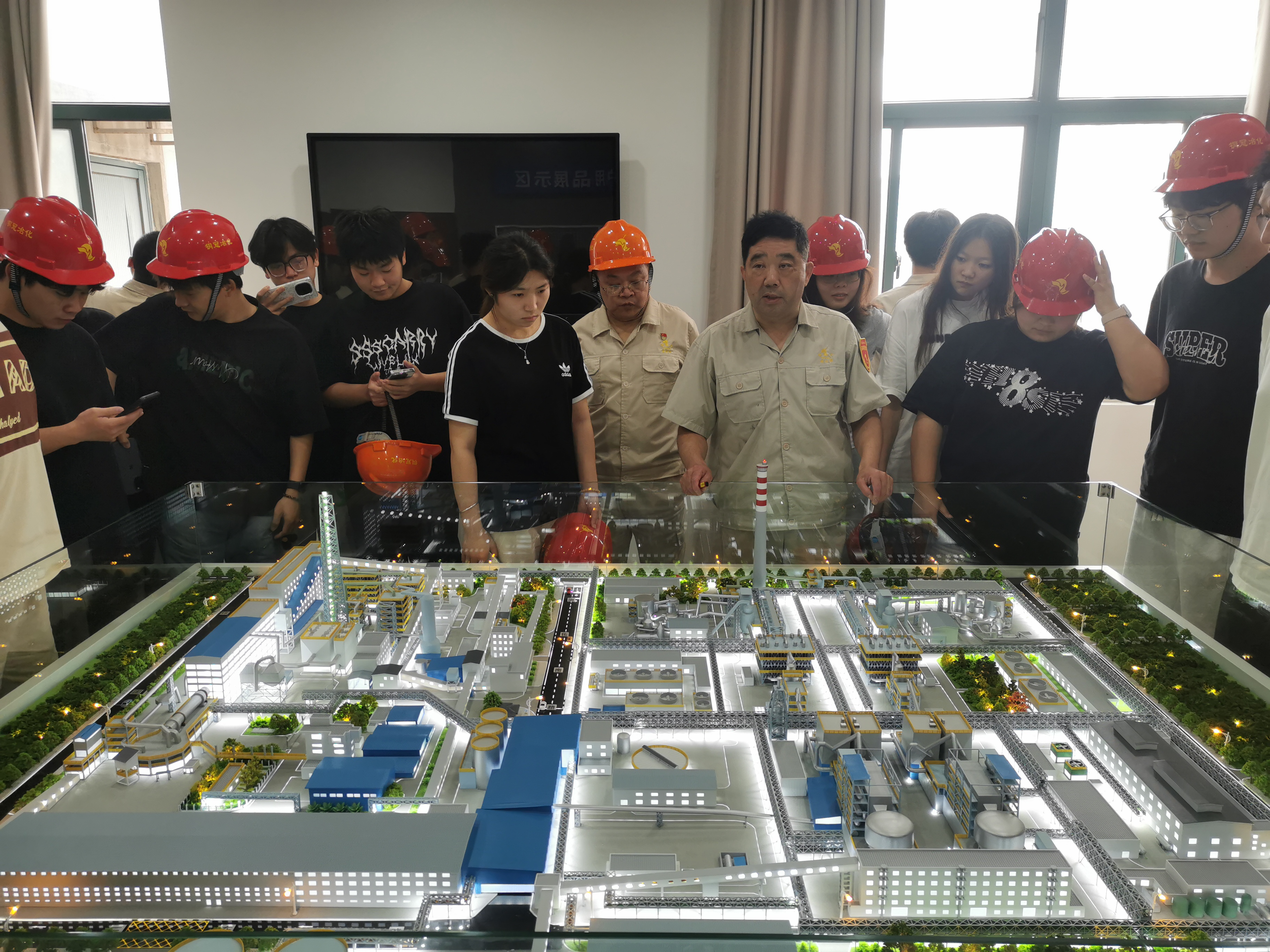 第三个环节由公司张北强部长带学生参观单位沙盘,并对照沙盘详细讲解公司的生产工艺流程。