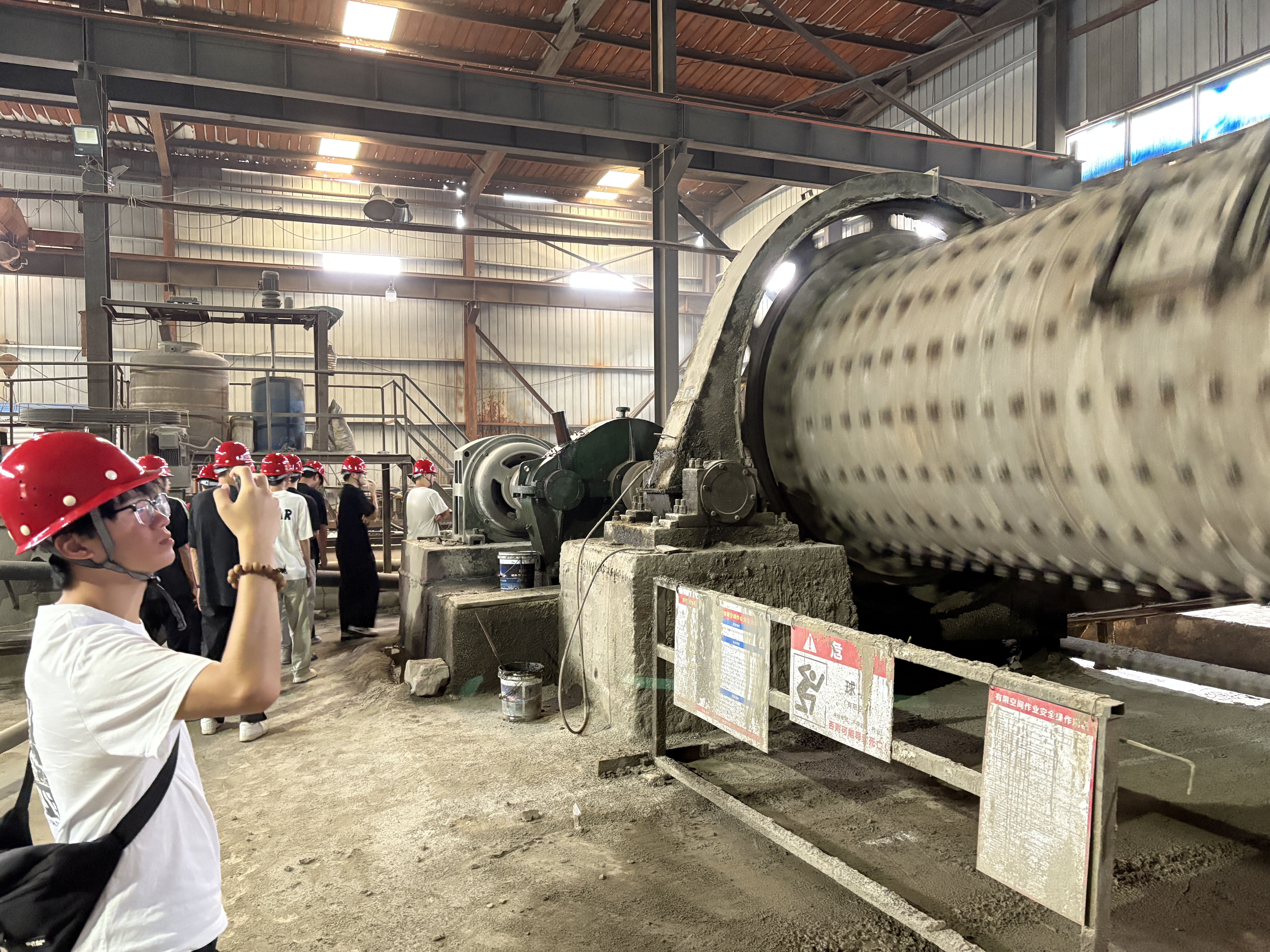 在专业教师和企业生产人员引导下,学生们有序参观各生产区域。磨矿区中,矿石被研磨成适宜浮选的细粒级矿浆,大家认真学习磨矿粒度对选别效果的影响。